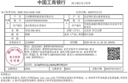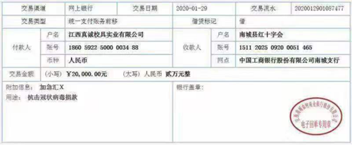 中飲智能技術(shù)股份有限公司捐贈上饒廣豐區(qū)政府防疫隔離區(qū)物資10萬元,江西省紅十字會5000元,南昌市創(chuàng)業(yè)促進(jìn)會500元。