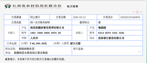 南昌致膳居餐飲管理有限公司捐款4萬元