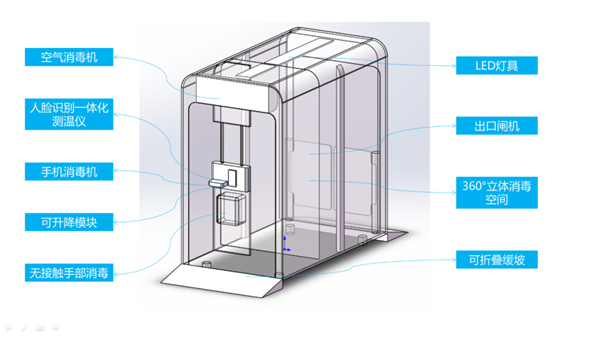 ▶ 360°立體式封閉消毒,空間大,人員及隨身物品可以一并進(jìn)行消毒。采用次氯酸/過氧化氫等食品級消毒液,健康安全環(huán)保衛(wèi)生;