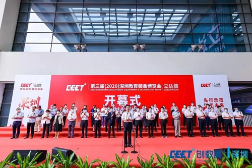 深圳市教育裝備行業(yè)協(xié)會會長彭錦環(huán)先生,冠名商立達信物聯(lián)科技股份有限公司市場總監(jiān)王科研先生,教育部關(guān)心下一代工作委員會副主任、中國教育裝備行業(yè)協(xié)會王富會長出席并致辭。開幕式最后,深圳市教育局黨組成員、副局長趙立宣布開幕。