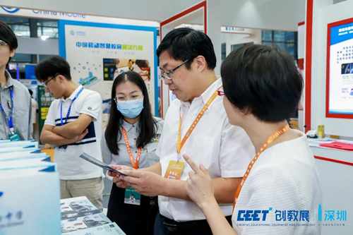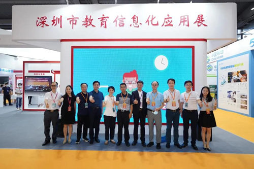 9月19日上午深圳市教育局副局長、黨組成員,市委教育工委委員趙立巡展,深圳市教育信息技術(shù)中心(教育裝備中心)主任張惠敏、深圳市教育裝備行業(yè)協(xié)會常務(wù)秘書長文熠陪同巡展。
