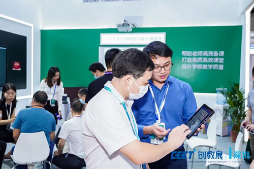 展會期間,蕓記憶為來賓安排了智慧教學模擬課堂,與現場觀眾開展課堂互動。不斷有觀眾來到蕓記憶展館,了解兩款產品的解決方案。