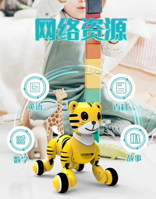 超過2500種聲音、動作、燈光等編程組合,激發幼兒的認識興趣和探究欲望,充分鍛煉孩子的想象力、空間力、邏輯思維能力,讓孩子在玩耍中也能學到科學知識。聯網后的機器虎也是一臺可移動的智能音箱,數學、英語、百科、故事等無限線上資源是小朋友的學習小幫手,也是您的生活小助手。