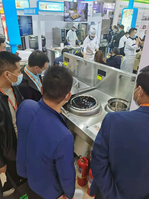開場不久,名廚磁電的爐灶展區便圍滿了人,各位學校領導一眼就被這幾臺靚眼的“大家伙”所吸引,到最后還忍不住親手體驗一把。
