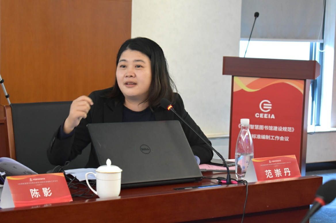 范崇丹代表《校園智慧圖書館建設(shè)規(guī)范》團(tuán)體標(biāo)準(zhǔn)編制工作組,對(duì)該項(xiàng)團(tuán)體標(biāo)準(zhǔn)的起草工作及標(biāo)準(zhǔn)框架進(jìn)行了匯報(bào)。
