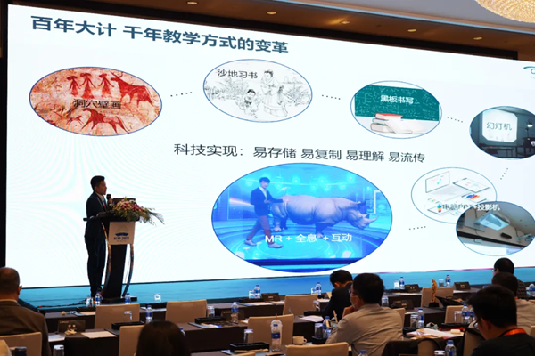 下午16:50分,奧圖碼解決方案事業部蘇國盛先生為大家打來精彩的演講“未來教育 睿享互聯——積累量變到質變 優化“質”的智慧化“,演講從疫情時代,環境變化,倉促之下,教育痛點的現狀,讓所有的在場觀眾感同身受,隨著情景化帶入,讓我們期待奧圖碼的全新力作,蘇先生首先講述了奧圖碼MR智慧教育解決方案,9D優化授課體系,MR場景呈現,奧圖碼MR教育系統呈現出三大優化。