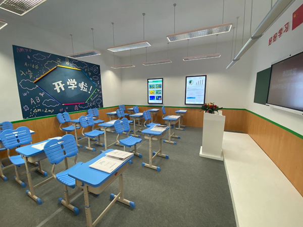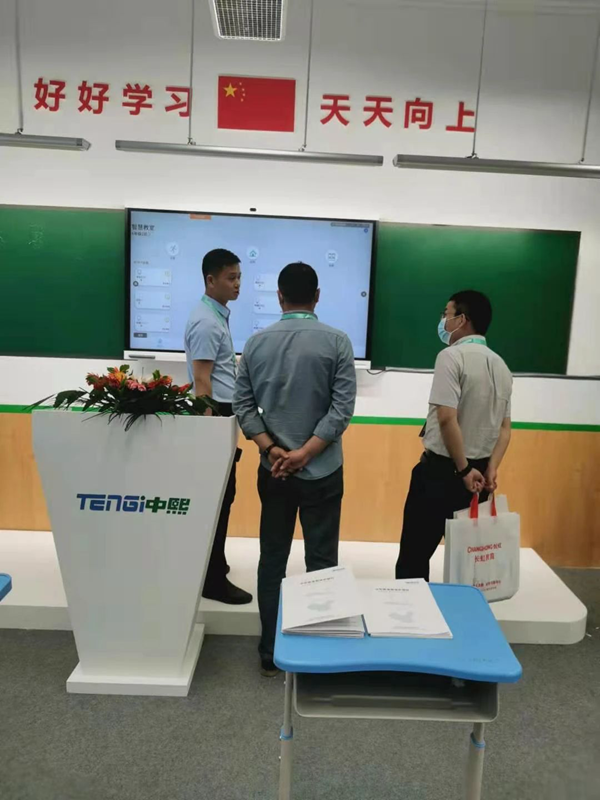 中熙教室護眼燈滿足國標并優(yōu)于國標,具有亮度高達500Lux以上、無頻閃、無藍光危害RG0、顯示高達95以上、炫光值16以內(nèi)、節(jié)能50%以上、壽命長達50000小時等特點。此次模擬教室1:1全景展示一體化智慧教室的整體效果,通過智能控制將一體機、教室燈光、電動窗簾等設施完美結合,教室照明的6檔智能控制可以做到按需照明,節(jié)能減耗的同時也可以達到最優(yōu)舒適度。進入展區(qū)的領導和參觀者均可以更直觀體驗護眼照明產(chǎn)品在實際教學中的便捷應用。