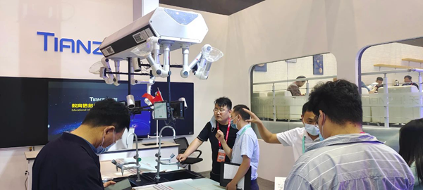 本次展會中,天智以“AI+教學交互操作平臺”及“AI+信息化實驗室”向觀眾展示了天智一體式頂裝系統硬件設備、分體式考試系統硬件設備及天智AI評分系統,教育行業的專業觀眾都對天智本次展出產品都表示了濃厚的興趣并紛紛體驗了天智產品的功能。