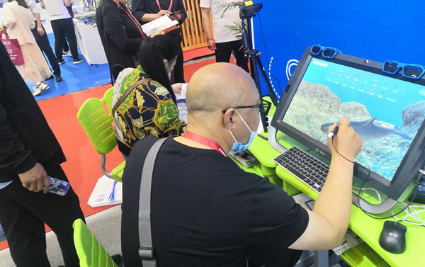 基礎(chǔ)教育領(lǐng)域的小學(xué)科學(xué)探索課程資源、初高中理化生實(shí)驗(yàn)資源、海洋生物、紅色教育展館等內(nèi)容讓參展觀眾眼前一亮。河南某小學(xué)的一位校長(zhǎng)觀看了生命科學(xué)模塊中蠶的模型,她表示”我在顯微鏡下都沒(méi)有看到這么清楚過(guò),蠶的蠕動(dòng)非常逼真、直觀和形象。”有業(yè)內(nèi)知名人士也表示,也未艾帶來(lái)的小學(xué)科學(xué)VR課件直觀、形象,符合小學(xué)生的認(rèn)知規(guī)律!
