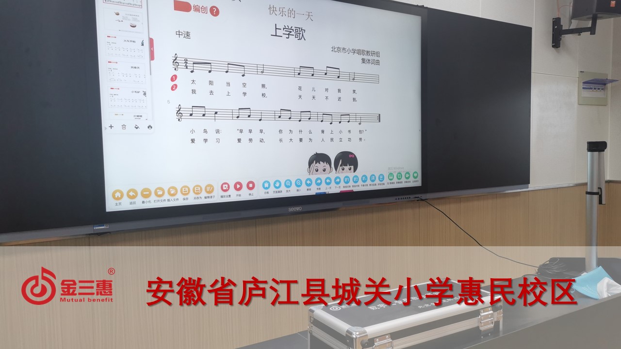 安徽省廬江縣城關小學惠民校區的數字音樂常規教室正式開始使用,本校數字化音樂教室由北京金三惠科技有限公司負責提供、安裝、培訓。