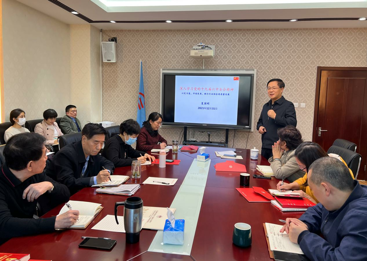 黨的十九屆六中全會召開以來,中國教育裝備行業協會將學習宣傳貫徹全會精神作為當前及今后的一項重大政治任務,作為深入開展黨史學習教育的重要舉措,持續掀起學習宣傳貫徹黨的十九屆六中全會精神熱潮。2021年12月31日,黨支部精心籌備,第二次組織開展深入學習黨的十九屆六中全會精神專題黨課,邀請協會副會長、秘書長夏國明以“以史為鑒,開創未來,助力行業協會高質量發展”為題講授黨課。活動由協會黨支部副書記、副秘書長朱俊英主持。