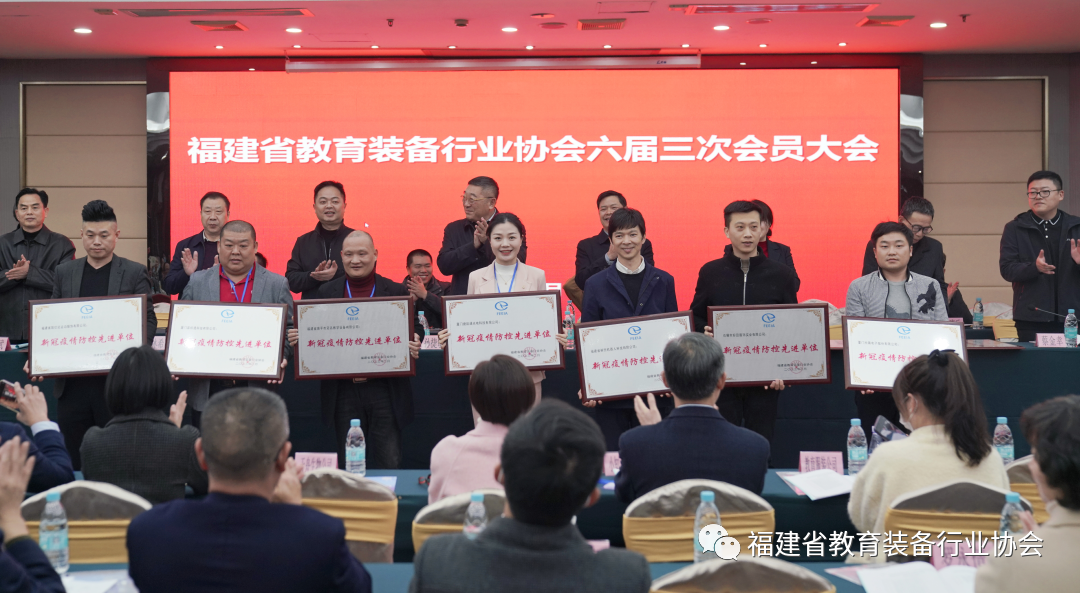 會上,協會副秘書長陳鴻宣讀了協會對新冠疫情防控先進單位和先進個人的表彰決定;及宣讀了聘任福建省教育裝備行業技術咨詢委員會新一屆委員的決定。此次共有14家省內外優秀企業和六名個人獲得疫情防控先進單位與先進個人榮譽。主席臺上的領導向獲獎單位、個人頒發了證書和獎牌;為新聘任的技術咨詢委員頒發了聘書。
