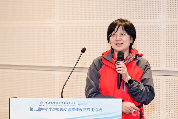 李瀛在致辭中表示,中國教育裝備行業協會按照教育部2023年工作重點,全力推動數字技術、人工智能技術在教育領域的應用,致力于推廣中小學虛擬現實課堂的建設與應用。在此基礎上,中國教育裝備行業協會教育信息化裝備分會開展“第二屆中小學虛擬現實課堂建設與應用論壇”;中國教育裝備行業協會教育裝備研究院也設立了“基于虛擬現實課堂的教學模式研究與實踐”的專項課題,希望能通過課題研究、專家引領、教學實踐、經驗分享的方式,推動中小學虛擬現實課堂建設與應用。隨著技術的不斷成熟和普及,以及政府、企業、學校各方面的重視,中小學虛擬現實課堂建設與應用一定會得到更加快速的發展。