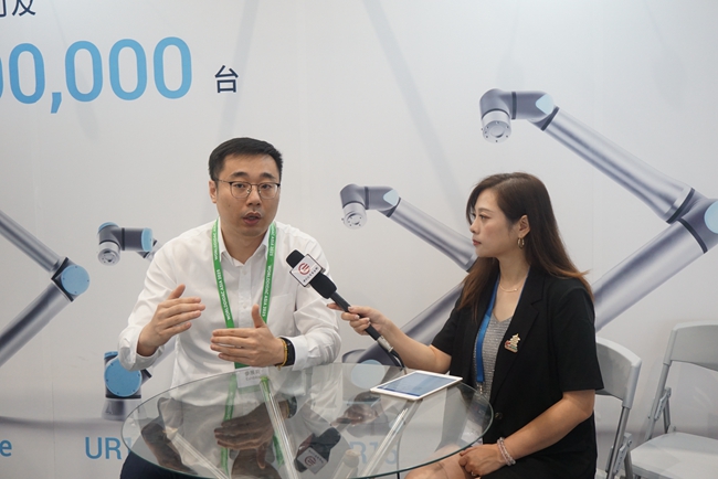 展會(huì)現(xiàn)場(chǎng),優(yōu)傲機(jī)器人銷售經(jīng)理崔宏宇接受本站采訪。