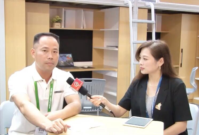 展會(huì)現(xiàn)場(chǎng),江西啟晨教育裝備集團(tuán)有限公司車間生產(chǎn)負(fù)責(zé)人黃明亮接受本站采訪。