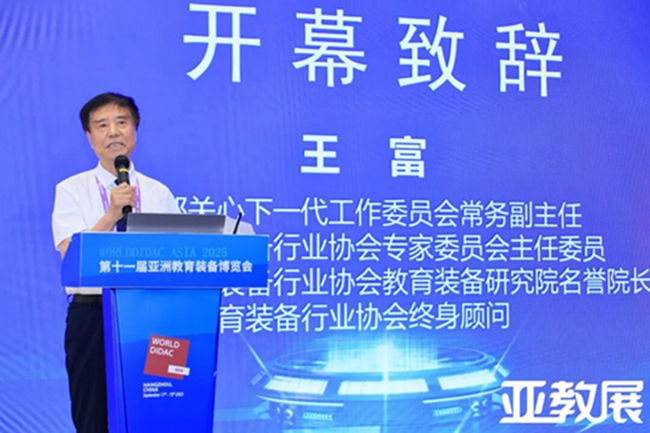 教育部關(guān)心下一代工作委員會常務(wù)副主任、中國教育裝備行業(yè)協(xié)會專家委員會主任王富應(yīng)邀出席會議并致辭。他對溫州教育裝備產(chǎn)業(yè)的發(fā)展成就以及《溫州市“人工智能+教育”三年行動計劃》的發(fā)布予以充分肯定,并提出智能教育裝備應(yīng)推進跨界融合、資源整合、行業(yè)聯(lián)合與專精結(jié)合,構(gòu)建“四橫五縱”的資源布局與AI賦能體系。其中,“四橫”涵蓋基礎(chǔ)教育、高等教育、職業(yè)教育和終身教育;“五縱”則對應(yīng)德育、智育、體育、美育和勞動教育,體現(xiàn)“五育并舉”的育人理念。