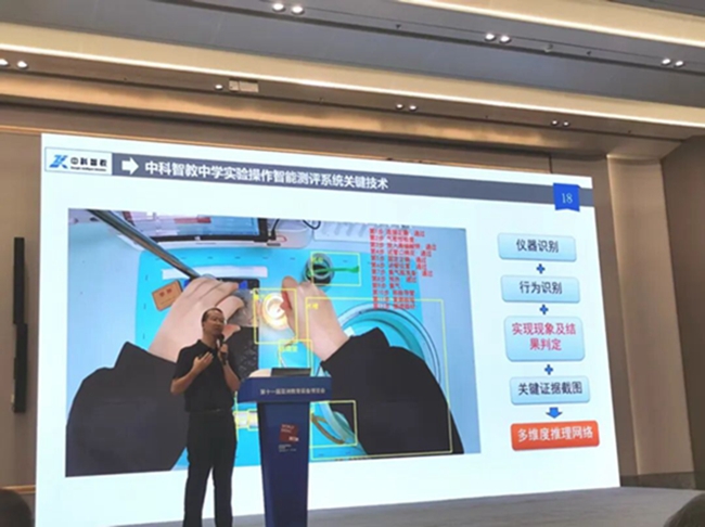 中科智教(蘇州)智能科技有限公司的丁志斌聚焦中學(xué)實驗教學(xué),分享了題為《人工智能在中學(xué)實驗教學(xué)及考試中的應(yīng)用》。他通過實際案例,展示AI技術(shù)在實驗操作評價、智能監(jiān)考與個性化反饋中的具體應(yīng)用,為實驗教學(xué)數(shù)字化轉(zhuǎn)型提供了新思路。