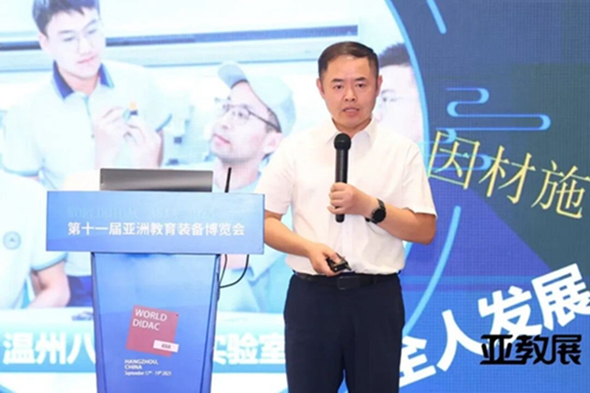 從溫州出來到北京創(chuàng)業(yè)的北京威成亞實驗設(shè)備有限公司的葉鵬翔,進一步延伸了AI+實驗教學(xué)的討論。他在《AI+實驗教學(xué)的思考與實踐》中提出,應(yīng)通過智能硬件與軟件系統(tǒng)結(jié)合,構(gòu)建開放、可擴展的實驗教學(xué)環(huán)境,助力培養(yǎng)學(xué)生科學(xué)探究與創(chuàng)新能力,讓學(xué)生上好每一堂實驗課。