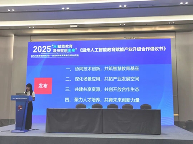 張瑜副會長代表協(xié)會正式發(fā)布《溫州人工智能教育賦能產(chǎn)業(yè)升級合作倡議書》。該倡議聚焦協(xié)同技術(shù)創(chuàng)新、深化場景應(yīng)用、共建共享資源和聚力人才培養(yǎng)四大方向,為構(gòu)建協(xié)同創(chuàng)新的AI教育新生態(tài)奠定了堅實基礎(chǔ)。