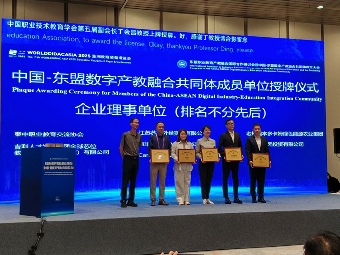 在東盟職業教育產教融合國際合作研討會暨中國-東盟數字產教融合共同體大會成立大會上,蘇豪外經實業公司榮幸成為共同體企業成員單位。公司將與該共同體中的中國及東盟各國的院校、行業機構、龍頭企業密切聯系,推廣合作案例與實踐經驗,深化協同育人機制,聯合開展產教融合項目,共筑職教出海、教育裝備出海新生態。