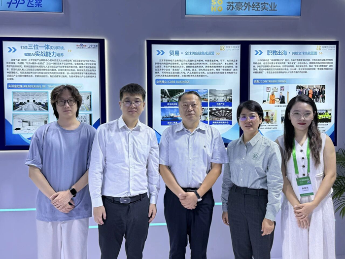 蘇豪外經實業公司受江蘇省教育裝備行業協會邀請,與百度飛槳(南京)人工智能產業賦能中心聯合參展。緊扣亞教展“技術助力教育裝備可持續發展”主題,在職教出海、教育裝備出海、AI人工智能等多個領域的新成果得以充分展現,堅持以“外貿拓新”與“內銷提質”為雙引擎,積極推動內外貿一體化進程,為國內國際雙循環注入新動力。
