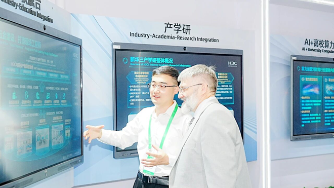 深耕教育領域多年,新華三已服務全國超2600所高等院校和科研機構,實現(xiàn)100%雙一流高校覆蓋,并為清華大學、北京大學等40余所頂尖院校提供智慧校園頂層規(guī)劃服務,成為推動教育數(shù)字化轉型的核心力量。此次展會,新華三基于“算力×聯(lián)接”、“AI+教育”、“教育科研一體兩翼”三大核心板塊,帶來技術與場景深度融合的創(chuàng)新解決方案。