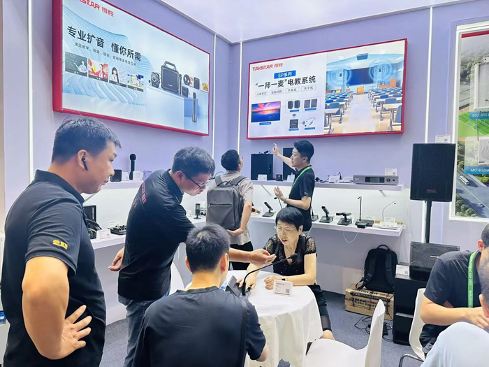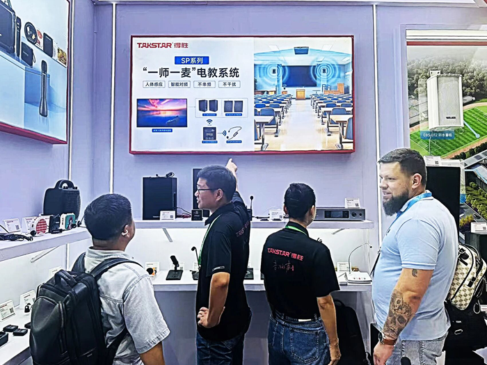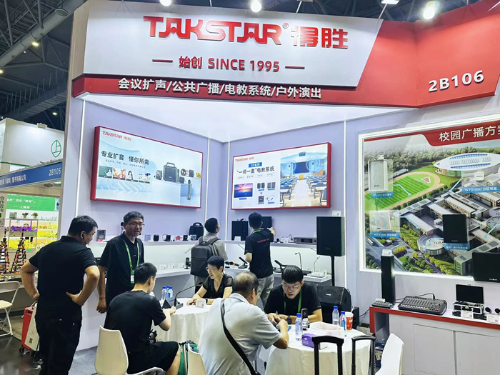 展會現場,得勝展出了涵蓋教室擴音、會議擴聲、IP廣播等多個場景的專業音頻設備,全面呈現了其為教育行業量身定制的聲音解決方案。