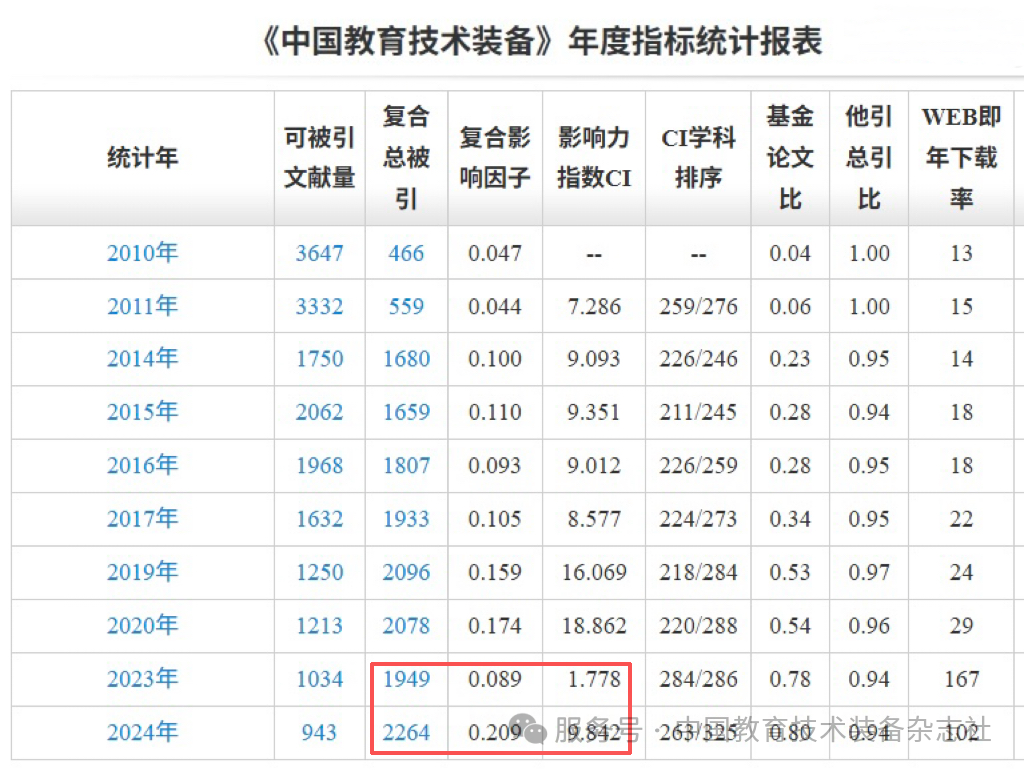 2025版《中國(guó)學(xué)術(shù)期刊影響因子年報(bào)》發(fā)布顯示《中國(guó)教育技術(shù)裝備》期刊影響力大幅提升