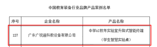 近日,中國教育裝備行業(yè)協(xié)會重磅公示了“中國教育裝備行業(yè)品牌企業(yè)案例名單”與“中國教育裝備行業(yè)品牌產(chǎn)品案例名單”。廣東廣視通科教設(shè)備有限公司憑借在理化生實驗室領(lǐng)域的深厚積淀與創(chuàng)新實力,成功入選品牌企業(yè)案例;旗下核心產(chǎn)品——中學(xué)AI教考實驗室升降式智能終端(學(xué)生智慧實驗桌)同步斬獲品牌產(chǎn)品案例殊榮,實現(xiàn)企業(yè)與產(chǎn)品雙維度權(quán)威認(rèn)證。