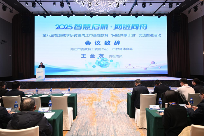2025年12月26日,由四川省教育信息化應用與發展研究中心、四川智慧教育聯盟及內江市教育和體育局聯合主辦的第八屆智慧教學研討暨內江市基礎教育“網鏈共享計劃”交流推進活動,在甜城內江隆重啟幕。本屆活動以“智慧啟航,網鏈同舟”為主題,匯聚了來自全省的教育管理者、專家學者、校長及一線教師,共同探討人工智能時代教育數字化轉型的路徑與未來。