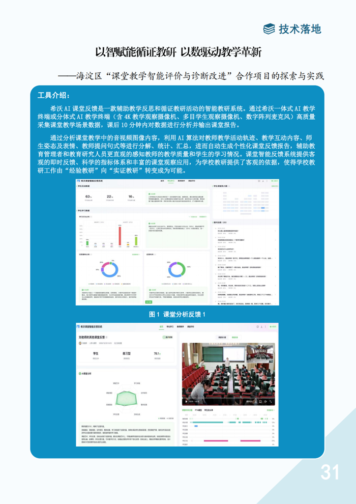 此次發布的《海淀人工智能教育》聯盟刊,由北京市海淀區教育委員會主管,區教育科學研究院主辦,聚焦“從政策到落地、從技術到課堂、從個體探索到生態構建”的全鏈條,旨在展現海淀AI教育的創新實踐。首期會刊在技術落地板塊中,以近萬字篇幅刊載《<以智賦能循證教研以數驅動教學革新>——海淀區“課堂教學智能評價與診斷改進”合作項目的探索與實踐》一文,系統解析了希沃AI課堂反饋系統的技術內核,并全面梳理了希沃與海淀區的合作背景、實踐成果及經驗啟示,受到與會者的高度關注。
