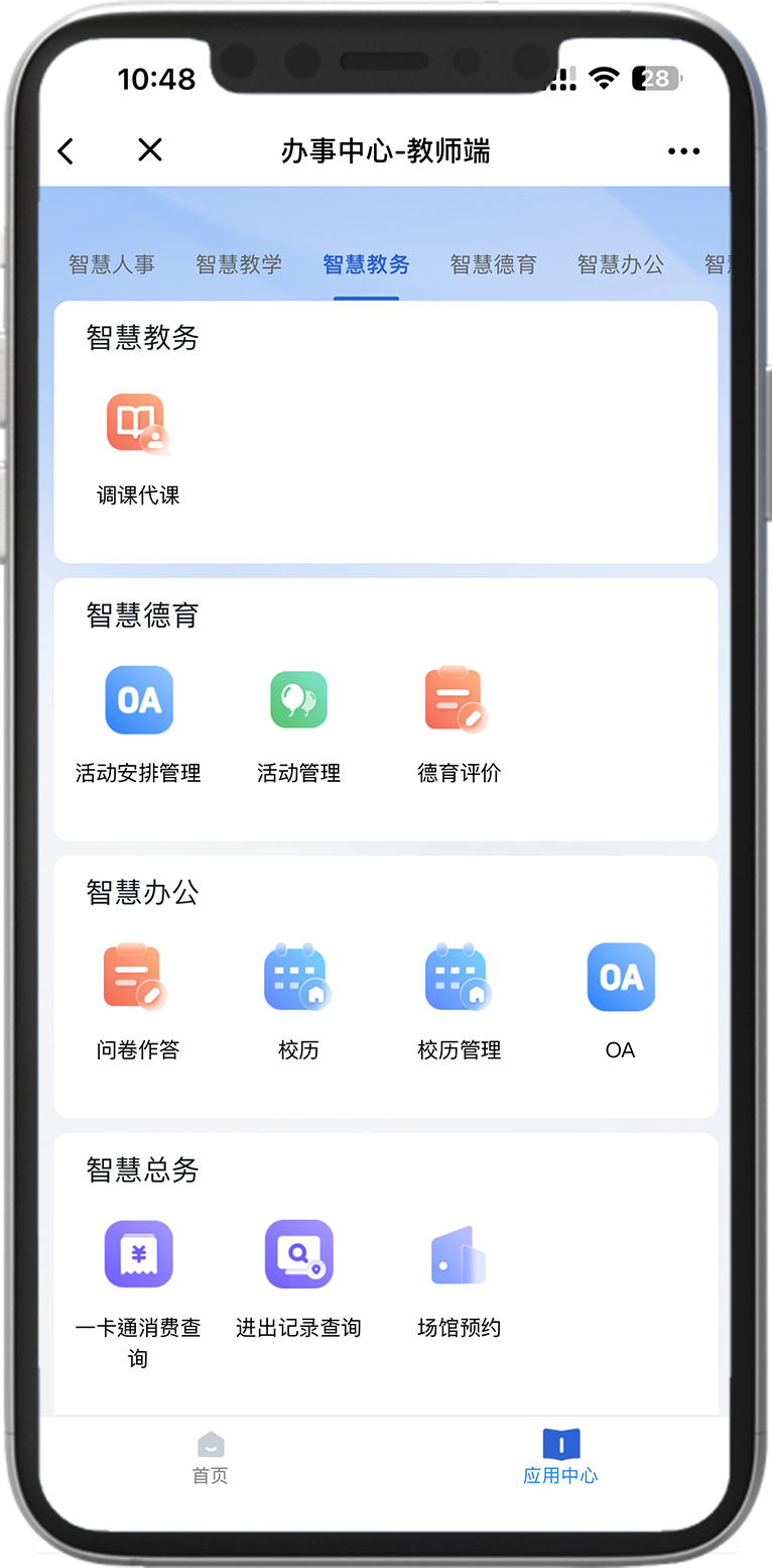 包含智慧德育、教務管理、OA協同辦公、檔案管理等多模塊應用,通過微服務架構獨立部署,實現學校業務應用快速響應。