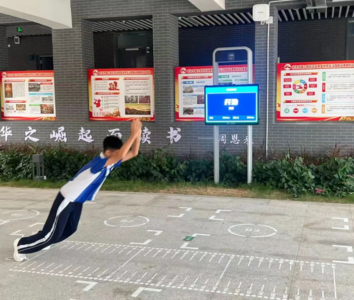 針對傳統體育訓練枯燥乏味、學生參與度低的問題,AI體育角將運動鍛煉與趣味游戲深度融合,多人趣味跳繩闖關、縱跳王者挑戰賽等項目,通過無感交互,搭配AI實時數據反饋——得分實時統計、排名實時生成,極大增強了學生的成就感與參與感。這種游戲化的運動方式,成功激發學生主動參與的熱情,讓運動成為校園新風尚。
