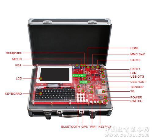 產品詳細介紹 CPU:ARM Cortex-A8 主頻達1GHz RAM:1GB三星K4T1G084QQ DDR2存儲芯片 FLASH:1GB 三星K9K8G08U0A NAND FLASH芯片 以太網:10M/100M以太網接口, 采用DM9000AEP網卡芯片 音頻:I2S總線, 輸入/輸出, 8歐姆/2W功放, 選用高音質WM8580A音頻芯片 PMU:采用美信MAX8698C電源管理芯片 系統總線:系統總線擴展接口, 16位數據和地址線 最小系統封裝:S5PV210芯片584引腳FBGA封裝, 核心插座采用高可靠性Molex, 引腳間距0.65mm 人機交互:觸摸屏操作方式 全鍵盤接口 USB 鼠標/鍵盤接口 無線藍牙鼠標/鍵盤 2*8矩陣按鍵 8個可控GPIO LED燈 19個平臺功能按鍵 板載接口:高速I2C接口 4個RS232 UART串行口 4-Timer with PWM 4個USB HOST接口, 可外擴功能模塊 觸摸屏液晶接口 HDMI1.3高清數字視頻輸出接口 Audio數字音頻輸出接口 1路TV IN/OUT視頻輸入/輸出接口 VGA接口 LAN以太網接口 4路SD/MMC存儲接口 3G通訊模塊接口 SIM卡接口 1路MIC IN接口 1路headphone 接口 1路JTAG仿真調試接口 1路LVDS接口 板載2個8歐2W揚聲器 1路CMOS Camera攝像頭接口 2個I2C總線接口(核心主板) 2個SPI總線接口(核心主板) 10通道12位ADC輸入接口(核心主板) LCD顯示接口:四線電阻式7寸高亮真彩觸摸屏, 像素800*480, LED背光, 16:9寬屏, 16:7M真彩色, 預留LVDS電容屏接口, 400Kbit/s高速I2C接口 視頻輸入/輸出:板載HDMI、VGA、TFT LCD、TV-OUT、LVDS多種顯示接口.支持CMOS攝像頭輸入、 CCD攝像頭輸入;VGA顯示采用GM7123--330MHz的3通道10位高速視頻 DAC芯片; LVDS顯示采用SN75LVDS83A—LVDS接口芯片, 4組差分 信號輸出 無線通訊模塊:WiFi通訊模塊:采用Marvell 88W8686芯片組, 支持IEEE 802.11B/G協議, SDIO接口 BT藍牙模塊:支持高速USB接口藍牙模塊, 高速藍牙數據通信. 3G通訊模塊:中興AD3812芯片組, PCI Express Mini Care接口, 支持WCDMA(UMTS)網絡、 GSM/GPRS/EDGE上網卡, 支持WCDMA 850MHz、1900MHz、2100MHz三頻, 支持GSM/ GPRS/EDGE 850MHz、900MHz、1800MHz和1900MHz四頻, 實現3G無線數據通訊、收發 短信等功能 GPS定位模塊:采用SiRF公司GP3SF1513F1-S高性能芯片組, 頻率L1 1575.42MHz,C/A Code, 支持20個衛星通道, 兼容SBAS(WAAS,EGNOS,MSAS) 攝像頭模塊:Samsung S5K4BAFB 1/4”UXGA CMOS芯片組 輸出8-BIT ITU-R.656/601(4:2:2), 最大幀率15fps@UXGA 實時時鐘:內部實時時鐘(帶后備鋰電池) 外接電源:AC220DC 12V/3A電源適配器