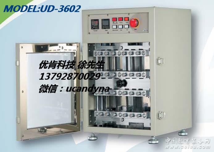 產(chǎn)品詳細介紹優(yōu)肯育肯UD-3602耐屈曲疲勞試驗機 A. 測試規(guī)範:JIS K6260,JIS K6301,ISO-132,ISO-133,ASTM D430,ASTM D813 B. 可夾試片數(shù)量:最大可裝12片(上架負載6片試片,下架負載6片試片)。 C. 屈曲速度:300±10cpm。 D. 屈曲行程:57mm。 E. 傳動系統(tǒng):垂直平衡傳動。 F. 馬達容量:1000W G. 測試自動停止功能: (可選擇) a. 屈曲循環(huán)設定:0~999999循環(huán) b. 屈曲測試時間:0~999999秒 H. 測試試片距離選擇: a. 夾具間最大距離控制:75mm(試片安裝) b. 龜裂觀測點之控制:65±0.5mm(試片觀測) K. 電源:AC 220V,50Hz,12A |