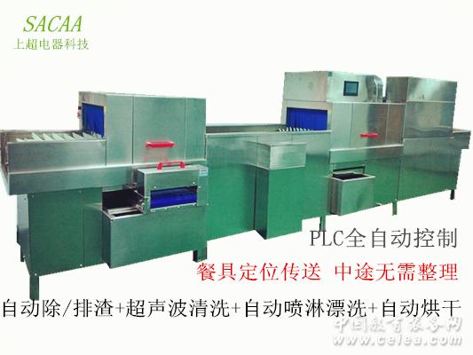 產(chǎn)品詳細(xì)介紹   我公司結(jié)合先進(jìn)的超聲波清洗技術(shù)和國(guó)外噴淋式餐具清洗技術(shù)。打造出全能全自動(dòng)化的適合中餐餐具特點(diǎn)的餐具清洗滅菌烘干一體機(jī),整機(jī)只需2人操作,為各大中型院校工廠食堂節(jié)約大量人力水電資源。節(jié)能環(huán)保,用心服務(wù)。    全自動(dòng)化超聲波洗碗機(jī)整機(jī)分自動(dòng)除渣 + 超聲波清洗 + 自動(dòng)清水沖洗+節(jié)能均熱烘干一步完成,采用獨(dú)創(chuàng)的復(fù)合式網(wǎng)帶傳送方式,適合大批量的不同材質(zhì)的餐具。自動(dòng)化程度高,全機(jī)只需2人操作(特殊下也只需增加1人從中協(xié)助即可)。大大節(jié)省了餐具清洗人員配置。有利于食堂工作人員合理分配。 全自動(dòng)化超聲波洗碗機(jī)集合了以下各項(xiàng)核心技術(shù)          *超聲乳化油脂,清洗特別干凈,清洗方式無(wú)死角?    *超聲滅菌,邊清洗邊消毒?    *采用先進(jìn)的超聲清洗技術(shù),節(jié)能高效,比老式的噴淋洗碗機(jī)每年節(jié)電1萬(wàn)度 。?    *自動(dòng)漂洗段用水后回收至自動(dòng)除渣段再次使用?    *不需專用清洗劑,安全衛(wèi)生環(huán)保,使用成本低,比老式的噴淋洗碗機(jī)每年節(jié)約洗滌劑3000kg    *不需人工預(yù)洗,只需2-3人左右操作即可,比老式的噴淋洗碗機(jī)節(jié)約人工3-6人