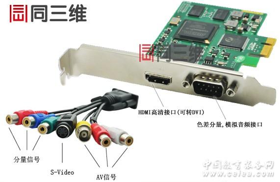產(chǎn)品詳細(xì)介紹 真正的高清HDMI采集卡,根據(jù)行業(yè)用戶的需求,同三維T230E 高清DVI/HDMI視頻采集卡是北京同舟視達(dá)科技有限公司針對(duì)專業(yè)高清用戶推出的又一款PCI-E接口的廣播級(jí)HDMI/DVI高清音視頻采集卡,通過(guò)HDMI音視頻接口傳輸,可以得到無(wú)損的全分辨率高清無(wú)壓縮視頻采集。該款音視頻采集卡集合了眾多優(yōu)點(diǎn)于一身,單卡支持1080P:一路高清(DVI//HDMI/) 或者一路視頻(分量/CVBS/S端子) + 一路音頻。并且附帶視頻錄播軟件和視頻直播軟件,并提供完整二次開(kāi)發(fā)包SDK。