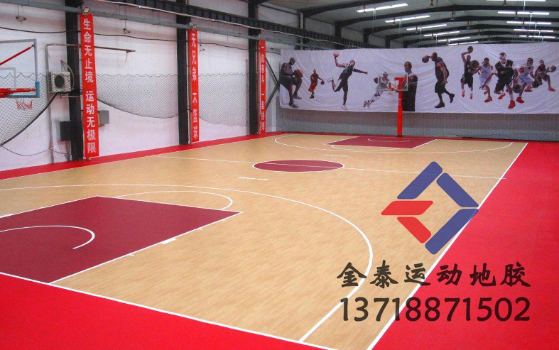 耐久性和耐磨性 保養容易 金泰籃球場專用地板采用100%純PVC優質材料,面層經特殊高環保高科技材料TPU技術處理,及具最佳耐久性和耐磨性。如表面污染,用干凈拖把、清水刷洗即可。重點臟污可用中性清洗劑清洗。單氣孔封閉式pvc底紋經過澀感、防水、防霉、抗菌處理.