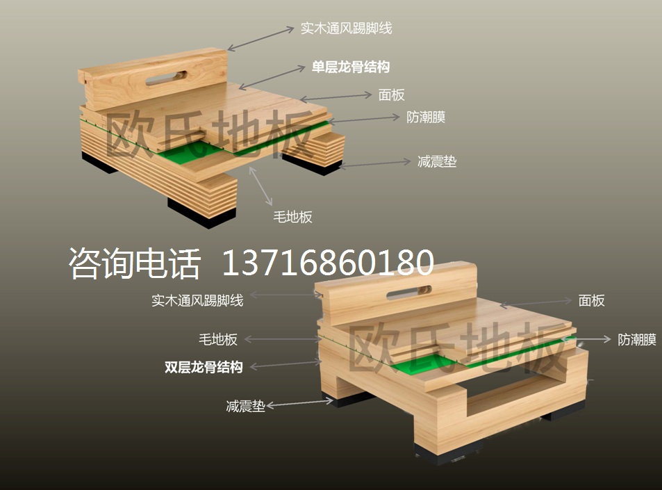 產(chǎn)品詳細(xì)介紹三大體育木地板特性介紹 體育木地板也稱運(yùn)動(dòng)地板,嚴(yán)格地說,應(yīng)該是體育場館保證其功能的運(yùn)動(dòng)木地板系統(tǒng)。 1、運(yùn)動(dòng)功能 體育木地板系統(tǒng)應(yīng)限度地滿足各種運(yùn)動(dòng)項(xiàng)目的技術(shù)特點(diǎn),同時(shí)盡可能避免運(yùn)動(dòng)人員承受不必要的負(fù)載和消耗過多的能量所具備的功能。 2、保護(hù)功能 體育木地板系統(tǒng)能盡量減輕運(yùn)動(dòng)人員在跑步、球類比賽和訓(xùn)練時(shí)所能承受的負(fù)載,以及在一些需要特殊保護(hù)的運(yùn)動(dòng)項(xiàng)目中減少運(yùn)動(dòng)人員落地時(shí)受傷的頻度。 3、技術(shù)功能 體育木地板系統(tǒng)能夠長時(shí)間滿足運(yùn)動(dòng)功能和保護(hù)功能,并且能適應(yīng)運(yùn)動(dòng)設(shè)備與器械的使用、移動(dòng)以及其它應(yīng)用所具備的一些性能。 耐磨、加厚、減震、舒適、彈性好,這就是體育運(yùn)動(dòng)地板相比于其他地板最獨(dú)特的優(yōu)勢之一。在如今倡導(dǎo)環(huán)保的社會(huì),體育運(yùn)動(dòng)地板作為環(huán)保優(yōu)勢的產(chǎn)品,能夠保證環(huán)保,全新材料生產(chǎn),從購買基礎(chǔ)此材料開始,到加工生產(chǎn),再到后來的地板檢測,每一道程序都經(jīng)過嚴(yán)格的把關(guān)控制 這種不是用于家居的地板來說,我們通常都不會(huì)過多的去了解它。同時(shí)體育運(yùn)動(dòng)地板的價(jià)格計(jì)算方法,大部分就更不得而知了。其實(shí)體育運(yùn)動(dòng)地板的價(jià)格計(jì)算方法很簡單,和家居地板鋪設(shè)差不多,需要一定的損耗,所以體育運(yùn)動(dòng)地板在鋪設(shè)的時(shí)候,一定要計(jì)算地板損耗價(jià)格。比如需要鋪設(shè)100平方米的體育地板,而計(jì)算的損耗大概是6%左右,用鋪設(shè)的面積乘以損耗(100*0.06),就是真正的體育運(yùn)動(dòng)地板價(jià)格。在正常的體育運(yùn)動(dòng)地板數(shù)量上多購買一些。