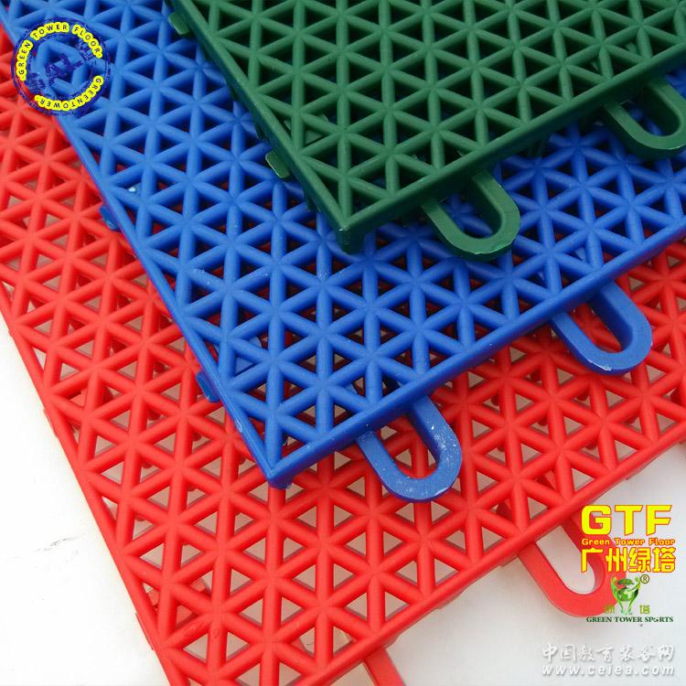 產品詳細介紹=圓柱三角形懸浮地板LTYZSJX產品特點== 產品名稱:懸浮式拼裝地板 產品介紹:型號:LTYZSJX 名稱:懸浮式拼裝地板/圓柱米格地板 尺寸:250*250*12.7mm 使用壽命:8-10年 材料:聚丙烯(PP) 表面形態:圓柱米格 使用溫度:-40℃——80℃ 產品優點: 1、良好的運動及保護性能; 2、拼裝設計、容易安裝及拆卸; 3、單片受損單片更換,不影響使用; 4、迅速排水,全天候使用; 5、100%可回收,無污染,食品級安全材料,無毒無味,無重金屬; 6、10年超長使用壽命; 7、顏色多樣,顏色可根據客戶需求設定 拼裝運動地板特點: 1、壽命長: 本產品主要材料為聚丙烯(PP)。綠塔拼裝運動地板在原料中同時采用抗寒冷、抗氧化、抗紫外線輻射等多種添加劑,屬改性的工程聚丙烯材料,保證了本產品在全天候(高溫+70°C、-40°C)條件下使用色澤持久、不翹曲、不變形,壽命超過15年。 2、綠色環保: 聚丙烯(PP)屬食品級材料,是無毒、無味、不寄生細菌的綠色環保產品。 3、多功能性: 產品適用于室內外網球場、籃球場、足球場、手球場、羽毛球場、乒乓球場、曲棍球場等體育運動場地,同時也適用于健身中心、幼兒園、各種休閑娛樂場所。尤其是在室外鋪裝鏤空的地板,排水效果好,雨后即可使用,更適合在雨水較多的地區使用。 4、有效的緩沖性能和高彈性能: 弓形懸浮梁、加強支撐腳技術的應用,使拼裝后的運動地板具有卓越的減震性能,可有效減少對運動員的損傷;同時能夠增加對球的回彈性,籃球的反彈率可達96%(國家標準GB/T19995.2--2005要求籃球反彈率為90%以上)。 5、標準的防滑值: 在表面防滑處理上,地板的設計采用了仿生學的原理,產品的防滑值達到了德國標準DIN18032對運動木地板的要求。 6、性價比高: 適應性強(可適用于室內外)、投資少(基礎投資僅僅是PU運動地板的一半)、壽命長(是PU塑膠運動地面的兩倍以上)、質量穩定(本產品基礎層無需防水處理,而PU塑膠運動地板基礎層防水處理不好的情況下可能出現起鼓現象)、色彩豐富(顏色由用戶選定或提供色樣),安裝、拆卸、更換、移動方便,維護成本低,是各類運動場地的最佳選擇。