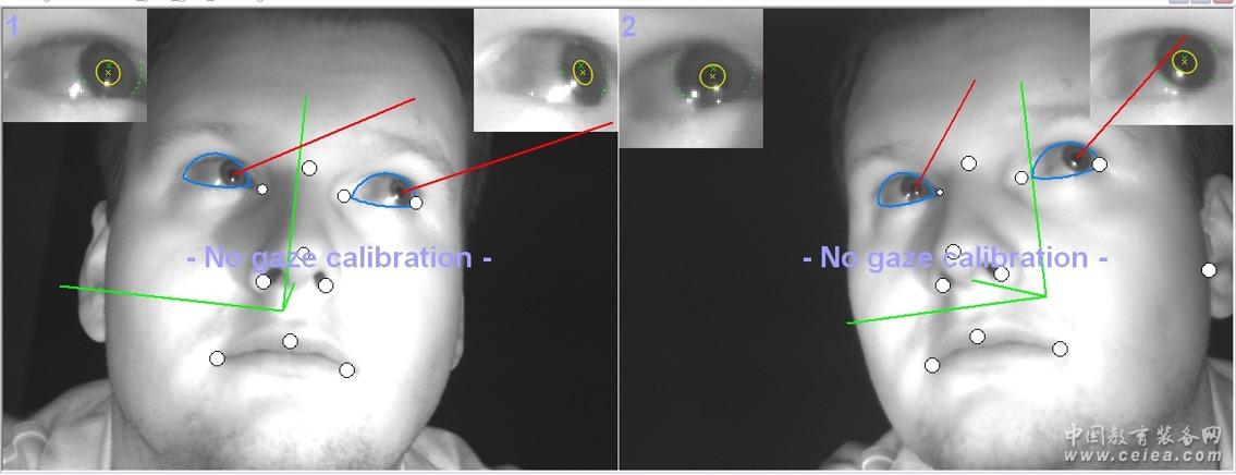 3D 模式真實模擬 Smart Eye能夠精確測算頭部的三維位置和方向。系統通過跟蹤一系列帶有面部特征的圖像,然后匹配這些特征點到3D頭部模型上。通過對虹膜和瞳孔的檢測和定位,并參照已經標定過的眼睛幾何模型來確定觀測者的視線的方向。同時眼皮也被定位,另外通過使用眼部的3D模型確定上下眼皮的距離。最后確定瞳孔直徑。