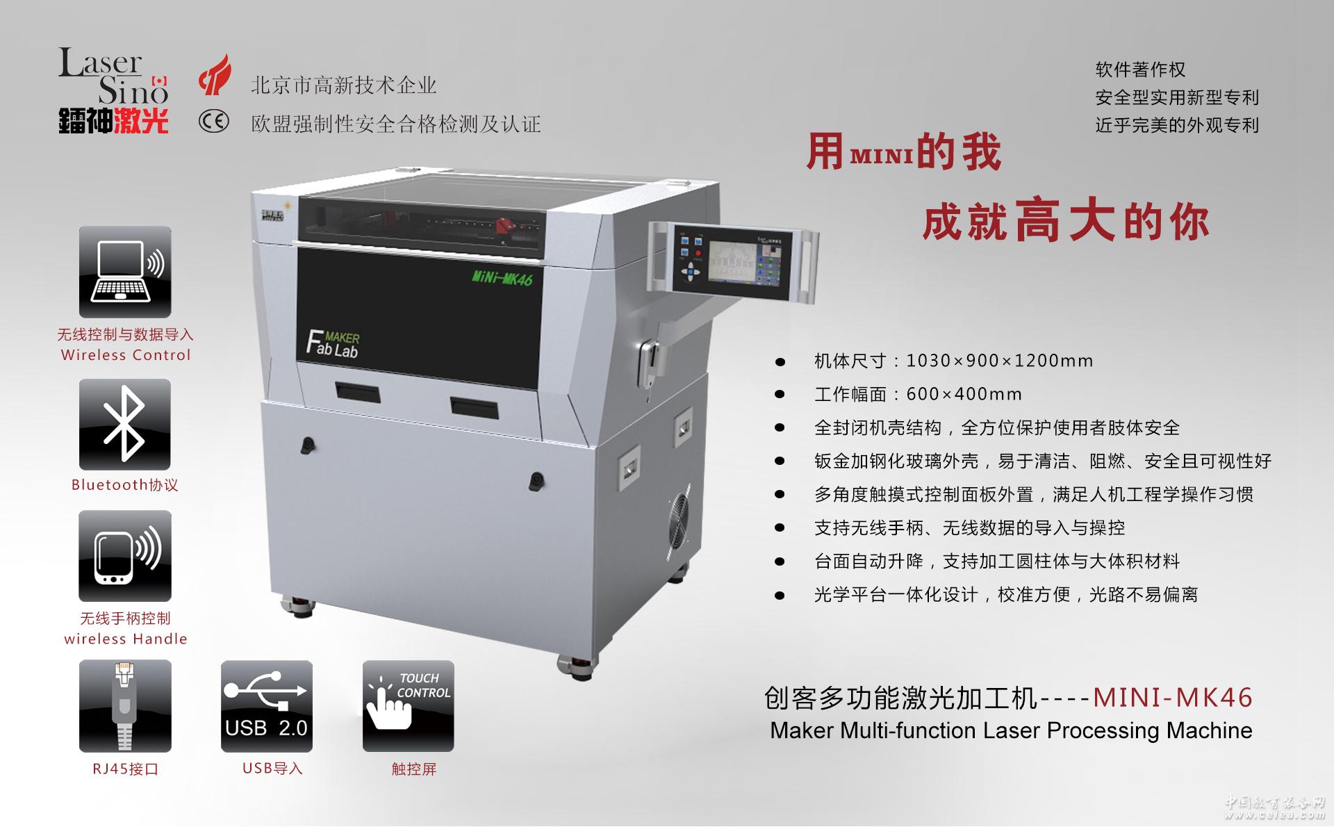 產品詳細介紹1、適用客戶群:創客設計師、工美設計師、通用技術、建模、機器人等創新實踐人群。 2、材料適應性:平面或圓柱體非金屬材料;包括:木器、竹器、亞克力、橡膠、皮革、卡紙、雙色板、紡織品、各種模型材料及非金屬柔性材料等。 3、產品特性: 1)MINI系列產品體積小,便于移動,結構緊湊,剛性強,穩定性好。 2)高性能激光發生器使“小家伙”大有可為,根據不同的材料密度,最大加工能力可達0.1--15mm。 3)根據創客加工的特殊性使產品具備了二維切割、掃描、打點、陰陽雕、照片雕刻、劃線、并具備圓柱體加工等多種加工工藝,充分滿足創客設計需求。 4)低噪助力升降平臺,低噪音、平穩性好,它使已裝配好的工件無須拆解也可整體放置加工,并支持旋轉輔助器放置加工。 5)機械傳動單元采用進口精密直線導軌、滑塊,配以德國進口抗拉伸機床齒帶,賦予了MINI系列產品工業激光機床才具備的加工精度和使用壽命。 6)設備全封閉設計結構,操作者不必擔心激光意外灼傷的發生,堪稱最安全的MINI激光設備。 7)MINI系列產品,上部與前端外殼采用高透亮鋼化玻璃,透光率高,視覺效果好,用戶可清晰看到內部加工過程,也可看到激光發生器工作過程,為師生提供了一套完整的光機電演示平臺。 8)MINI系列產品正壓保護系統可杜絕加工中明火產生、加工碳化現象的減少、光學鏡片的污染等均能起到良好保護作用。 9)超強低噪的煙塵排放系統使MINI在煙塵排除上更環保,更安靜。 10)全自動水冷循環系統,有效增強激光發生器的使用壽命,無須人工換水,斷水報警,防止缺水爆管發生。 11)斷電續切系統,保障了設備在突然斷電、意外停機后再次開啟設備的加工連續性,節約了加工時間、加工材料。 12)針對創客加工特殊需求和設計特點,MINI操作系統具有:界面友好、操作簡單、無須編程、上位軟件兼容性好、多圖層多工藝一次輸出等特點。全面支持AutoCAD、Coreldraw、Illustrator、Photoshop、文泰等市面常用矢量或位圖格式。既可支持高速USB數據傳輸,亦可用RJ45進行遠程操作,控制系統裝載微型閃存,創客產品可直接導入MINI設備,隨用隨提取,而無須PC干預。加工參數隨機顯示、隨機修改,加工操作隨機應變。 13)MINI系列產品首次將控制面板移出,運用萬向伸縮支架固定于設備側面,用戶可根據不同體位需求調整最佳的操作體驗。 14)MINI-MK46控制面板,將90%的功能使用液晶觸控方式進行操作,將氣、排塵、手動出光、方向按鍵單另列出,方便用戶在設備待機時的節能降噪控制。 15)MINI-MK46控制系統支持用戶選配無線手柄進行無線操控,也可加載無線模塊對設備進行無線數據傳輸與控制。 綜上所述:MINI-MK46激光加工機設備雖小,但卻具備了:功能強大、配備齊全、性能卓越、安全系數高、操作人性化等特點,該設備所具備的優越特性正是創客設計師們的共同追求。 4、技術指標: 有效加工行程(mm):600×400×100 材料適用性:對熱加工無形變、無化學反應且不反光的非金屬柔性平板或圓柱形材料 加工厚度:≤15mm(視材質密度而定) 加工工藝:切割/掃描/打點/陰陽雕/照片雕刻/劃線/圓柱體加工 上位軟件:AutoCAD、Coreldraw、illustator、Photoshop、文泰、中望CAD或其他相關聯矢量軟件。 控制系統:正版鐳神激光雕刻切割機系統(軟著登記號:2013SR092297) 操作平臺:可伸縮懸臂式液晶觸控操作臺,可支持無線手柄及無線數據傳輸。 操作平臺動作參數:左右180°,仰俯±45°,伸縮10-60cm,升降40cm 可視效果:全視覺加工臺面和激光發生器教學可視效果 機械傳動:XY軸全直線進口導軌,Z軸低噪助力升降系統 防明火裝置:正壓保護防明火裝置 冷卻方式:全自動水冷循環系統及斷水保護裝置 煙塵排放:高吸附低噪煙塵排放裝置 激光介質:CO2封閉式激光發生器55W 臺面形式:高密度金屬蜂窩升降臺面 光學鏡片:進口光學反射與聚焦鏡片 電壓要求:220V/10A/50Hz 環境要求:溫度2-45℃;濕度5%-90% |