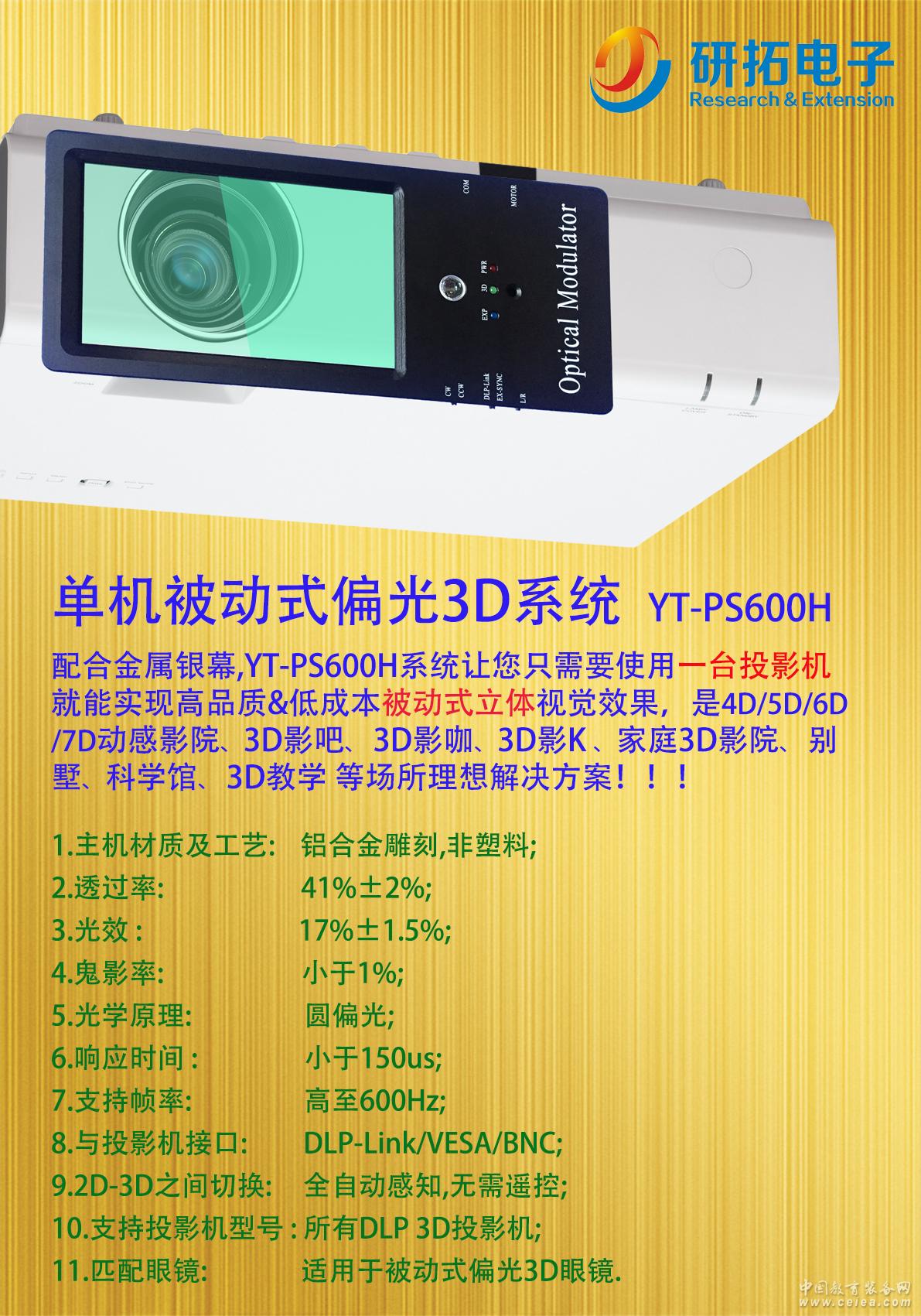產品詳細介紹研拓電子研發的專用于3D教學偏光立體轉換器YT-PS600H系統讓您只需要使用一臺投影機就能實現高品質&低成本被動式立體視覺效果,是3D立體 教育 教學 3D物理實驗 3D化學實驗,學校3D實驗室 超低成本解決方案