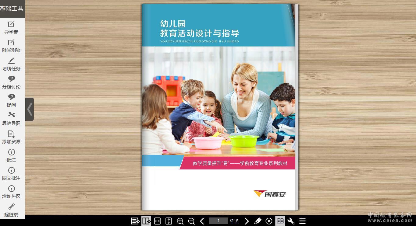 紙質資源:《幼兒園教育活動設計與指導》立體化教材1本;《模擬幼兒園實訓項目指導手冊》實訓指導書1本;案例集1本;試題集1本。
