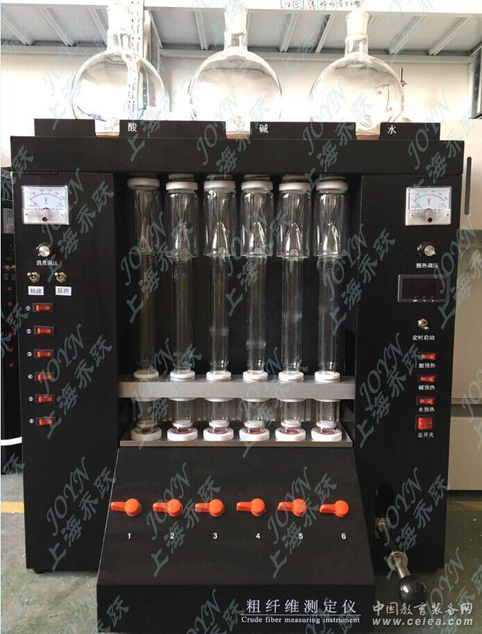 產(chǎn)品說明: JOYN品牌粗纖維測定儀是依據(jù)目前常用的酸堿消煮法消煮樣品,并進行重量測定來得到試樣的粗纖維含量的儀器。粗纖維測定儀采用濃度準確的酸和堿,在特定條件下消煮樣品,再用乙醇除去可溶物質(zhì),經(jīng)高溫灼燒后扣除礦物質(zhì)的量,所含量稱粗纖維。粗纖維測定儀不是一個確切的化學(xué)實體,只是在公認強制規(guī)定的條件下測出的概略成份,其中以纖維素為主,還有少量半纖維素和木質(zhì)素。 產(chǎn)品特點: 1、粗纖維測定儀消煮裝置采用優(yōu)質(zhì)陶瓷加熱材料,熱效能好,能充分獲得消化效果。 2、所有浸提過程可通過自動放置閥操作,每個樣品整套試驗可單獨操作。 3、內(nèi)置進口蠕動泵,耐腐蝕,抽真空過濾且真空度可調(diào),可氣體反吹,加速洗滌效果。 4、粗纖維測定儀可配循環(huán)恒溫水浴,進行高精度溫度控制。 5、樣品高度可升級調(diào)節(jié),方便取樣放料。 6、整套實驗過程都是自動完成,無需手動操作。 技術(shù)參數(shù): 粗纖維測定儀型號:JOYN-CXW-6 測定對象:各種糧食、飼料、谷物、食品及其他農(nóng)副產(chǎn)品中粗纖維的含量 測試樣品數(shù):6個/次 重復(fù)性誤差:粗纖維含量在10%以下,絕對值誤差≤0.4 粗纖維測定儀粗纖維含量在10%以上,相對誤差≤4% 測定時間:在儀器上所需約90min(包括酸30分、堿30分,抽濾和洗滌約30分) 電源:AC220V/50HZ 功率:3.3KVA 體積:540×450×670mm 重量:28kg 實物圖: 聯(lián)系廠家-劉萍--150 2109 3014 或企業(yè)QQ:2851513073