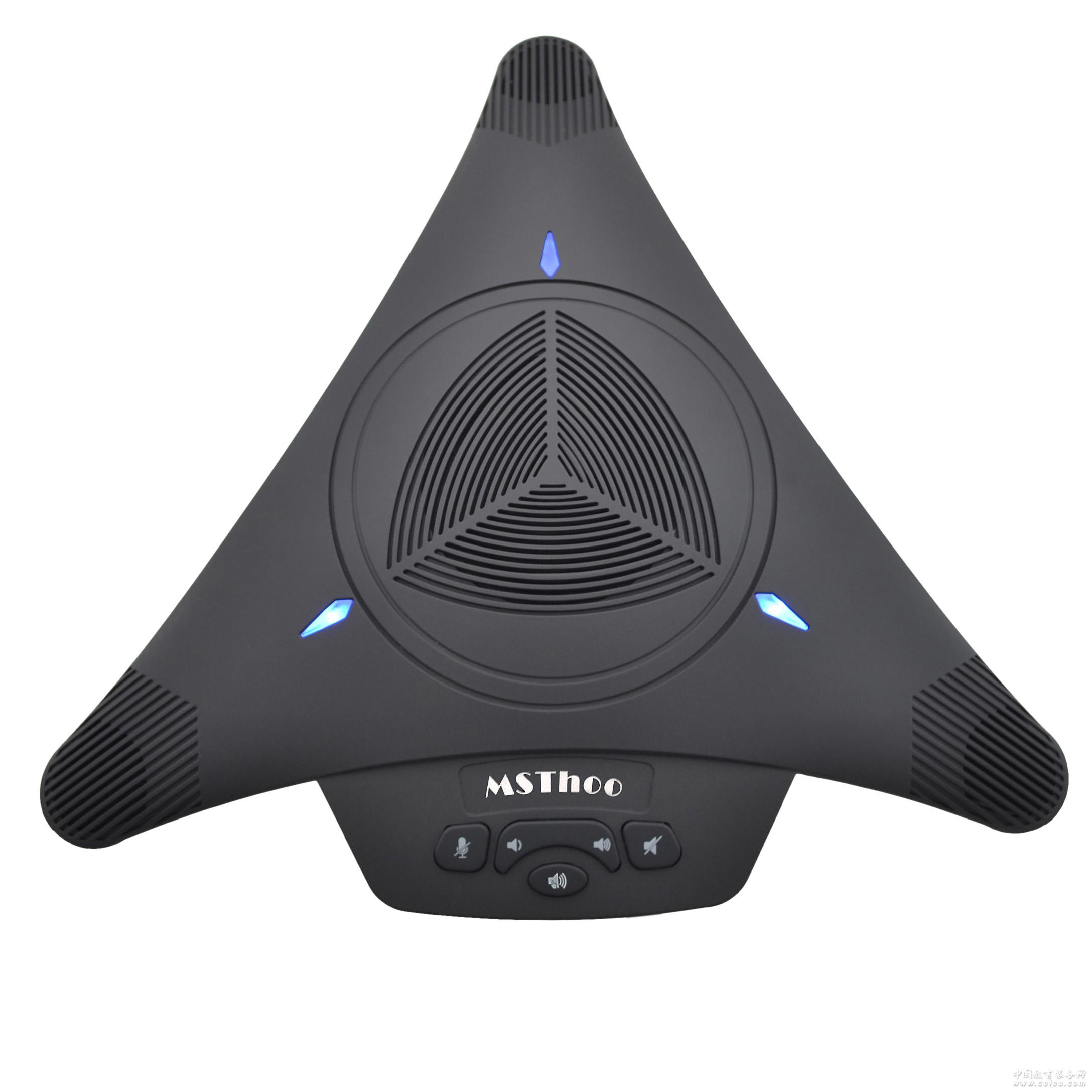 產品詳細介紹 MST-X1視頻會議全向麥克風采用USB免驅動設計,內置 大功率中低音揚聲器,采用目前最選進的256ms回音消除算法,內置語音自動增益平衡(ALC)功能,無論發言者離的遠近都能很清晰的拾取到聲音。360度全 指向高靈敏度雙電容麥克風,20-60平方米內收音無死角,一人開會時可自由走動,多人會議時,每個人都可以安心坐在自己的位置上,不需特別靠近或是移動全向麥克風。適用于各種視頻會議和即時通訊軟件,即插即用。 MST-X1視頻會議全向麥克風是一部提供于軟件視頻會議以及VOIP所設計之高音質的speakerphone。內建高效能智能型DSP芯片,進、出音頻直接在芯片上進行高速運算處理,不但能夠有效阻絕雜音、消除回音,高速處理高品質16K-24K音頻取樣、運算,讓軟件視頻會議應用可以得到清澈干凈的語音通訊品質。