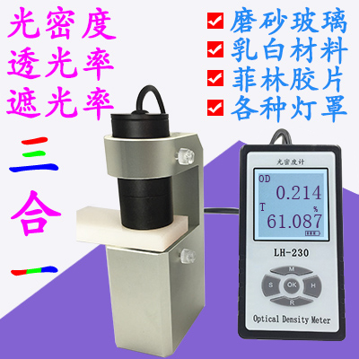 產品詳細介紹 LH-230是一款用于測量漫透射材料的光密度計,同時也是一款具有積分球效果的高級透光率儀,廣泛用于磨砂玻璃、乳白燈罩、亞克力、擴散板、菲林、油墨等材料的光密度和透光率測試,儀器光源符合CIE明視覺函數標準。