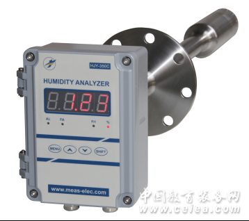 產品詳細介紹煙氣水分儀HJY-350C進口傳感器 技術參數: 測量原理:電容式 顯示方式:4位高亮LED顯示,顯示分辨率0.1 測量范圍:絕對濕度:0 ~ 40% VOL 相對濕度:0 ~ 100% RH              (只能同時顯示一種模式,訂貨時請加以說明) 分 辨 率:0.1% 測量精度:<±1.5%FS 重 復 性:<±1% 響應時間:T90<15S 模擬輸出:4-20mA.DC(非隔離輸出,負載電阻小于500歐姆)               2路可編程干觸點型無源報警輸出,觸點畬筧萘�220VAC/2A 其它接口:RS232(默認)或RS485 采樣方式:直插式 樣氣組份:無可燃性氣體、無強腐蝕性氣體,灰塵量小于1mg/Nm3 工作溫度:儀表:-10 ~ +50℃ ,探桿0 ~ 170℃ 供電電源:AC220V 50/60Hz  防 護 性:探桿為316F、 儀表盒防護等級為IP65 使用壽命:儀表>36個月、傳感器>24個月(正常使用條件下) 探頭長度:常規0.5m、1.0m、1.5m,其它長度可定制(<1.8m) 安裝方式:插入式、DN65標準法蘭安裝 儀器特點: 一體化設計,安裝方便,減少外部干擾對測量值的影響; 原裝進口傳感器,能有效保證儀器精度和使用壽命; 高精度的溫度自動補償,消除環境溫度的影響; 可以增加擴展功能對高溫露點值進行精確測量; 兩級粉塵過濾設計,有效過濾粉塵和酸性液體; 探桿316F材質,耐腐蝕性強; 儀表殼體防護等級IP65; 操作簡單、使用壽命長、易維護; 可提供絕對濕度或相對濕度兩種顯示結果(請在訂貨時予以說明)。 應用場合: 廣泛應用于煙氣在線連續監測系統CEMS中脫硫脫硝煙氣濕度的測量,亦可應用于木材、建材、造紙、化工、制藥、纖維、紡織、煙草、蔬菜、食品加工的濕度測控。 備注:若遇到低溫高濕高粉塵環境,我公司將為您提供合理的煙氣濕度解決方案。 訂貨須知(用戶訂貨時請注明) 探桿長度(常規1米) 使用環境溫度 背景氣體組份   |