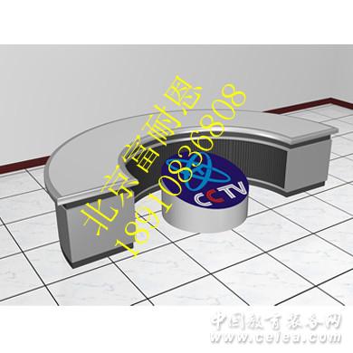 總體設計 標準型播音桌2.2米長,經典流線型設計,外形美觀大方,符合人體工程學原理,符合光學要求,鋼木組合結構,安裝方便快捷,,也可根據演播室大小,量身設計訂制。