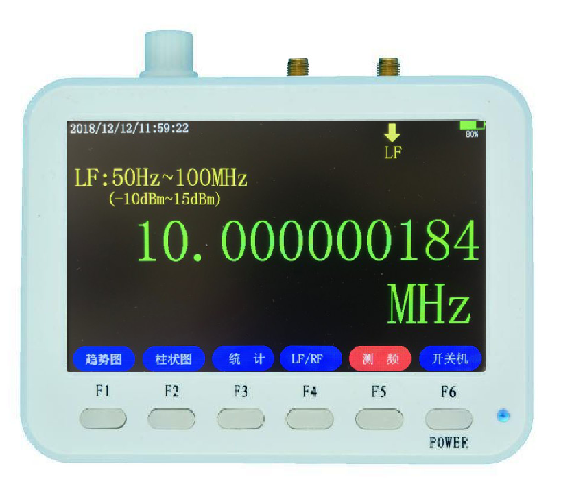 產(chǎn)品詳細(xì)介紹FC-4000具備小巧、高分辨率和高穩(wěn)定等特點(diǎn),儀器內(nèi)置鋰電池,具備小巧、高分辨率和高穩(wěn)定等特點(diǎn),可使用手機(jī)標(biāo)準(zhǔn)USB充電口充電,滿電可使用2小時(shí)左右,方便戶外測(cè)量。除了精確測(cè)量實(shí)時(shí)頻率,還提供基本統(tǒng)計(jì)值(Max、Min、Avg、Pk~Pk)、頻率趨勢(shì)圖、頻率分布柱狀圖等統(tǒng)計(jì)功能,方便易用。 1.2. 產(chǎn)品特性 5英寸高分辨彩色TFT顯示屏,將測(cè)量統(tǒng)計(jì)結(jié)果清晰顯示出。 高穩(wěn)定性O(shè)CXO(可選),為頻率計(jì)提供了精準(zhǔn)時(shí)基,出廠使用原子鐘校準(zhǔn)。 外形尺寸小巧(6寸手機(jī)大小,單手可拿)和便攜,內(nèi)置高能量密度鋰電池。 高精度:0.001Hz(對(duì)常用晶振頻率,相對(duì)精度0.001ppm)。 實(shí)時(shí)統(tǒng)計(jì)功能:對(duì)于實(shí)時(shí)信號(hào)頻率測(cè)量,可以精確顯示信號(hào)實(shí)時(shí)頻率、Max、Min、Avg、Pk~Pk值,準(zhǔn)確清晰的顯示信號(hào)頻率信息。 擴(kuò)展的統(tǒng)計(jì)顯示能力,包括頻率記錄趨勢(shì)圖,以及累積頻率分布柱狀圖。 1.3. 典型應(yīng)用 一、利用頻率計(jì)來測(cè)量時(shí)鐘、總線CLK、有源晶振或射頻信號(hào)源的精確頻率,如圖 1。 圖 1 10MHz原子鐘測(cè)量圖 二、對(duì)通信設(shè)備高精度抖動(dòng)和漂移測(cè)量和分析 無論是在較長時(shí)間內(nèi)執(zhí)行低速高度精確的測(cè)量,還是在較短時(shí)間內(nèi)執(zhí)行高速測(cè)量,都可以使用FC-4000頻率計(jì)作為經(jīng)濟(jì)型、高精度的抖動(dòng)和漂移分析解決方案。 查看批量數(shù)據(jù)的最大/最小值,平均值,Pk~Pk值如圖 2 通過一系列測(cè)量查看頻率的趨勢(shì)和變化如圖 3 查看批量數(shù)據(jù)的柱狀圖如圖 4 圖 2 某15kHz信號(hào)實(shí)時(shí)測(cè)量圖 圖 3 某15kHz信號(hào)源頻率趨勢(shì)圖 圖 4 某10kHz信號(hào)源頻率柱狀圖 2. 技術(shù)指標(biāo) 項(xiàng)目 指標(biāo) 輸入信號(hào) 50Hz~100MHz AC/DC 功率:-10dBm~15dBm 100MHz~4GHz AC/DC 功率:-10dBm~15dBm 時(shí)基 OCXO(可選)頻率: 13MHz. 時(shí)基特性 精確度:<±2×10-7 老化率:<±5×10-10/月 溫漂: 0℃~70℃ ±1×10-8 (參考25℃) 精度 時(shí)基誤差±0.001Hz 顯示系統(tǒng) 彩色TFT顯示屏 最大分辨率 0.001Hz 液晶分辨率 800×480 液晶尺寸 5寸 射頻接口 SMA-K 內(nèi)置RTC時(shí)鐘 支持 電池容量 3300mAh(典型) 充電時(shí)間 4~5小時(shí) 供電接口 Micro USB接口 外形尺寸 135mm*101mm*30mm 工作溫度 -20~45度 存儲(chǔ)溫度 -20~70度